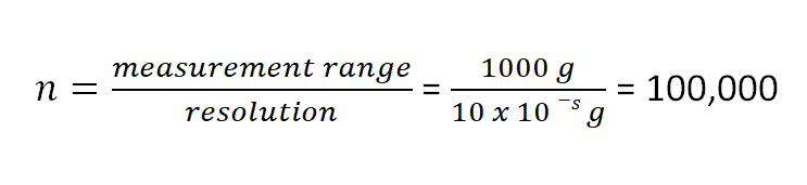 Example: 1000 g load capacity scale with 10 mg accuracy: