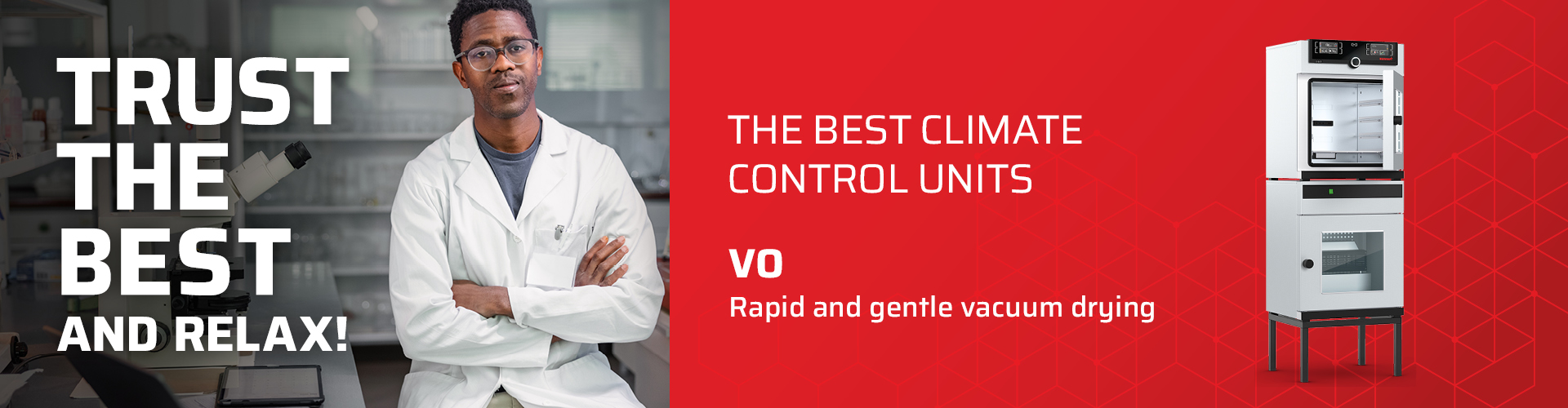 Renewed controlled vacuum cabinets with volumes of 29, 49 and 101 liters with controllability from 5 to 1100 mbar.