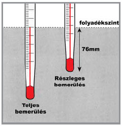 76 mm-es bemerülés: a hõmérõt a folyadék szintjétõl 76 mm-re kell bedugni.