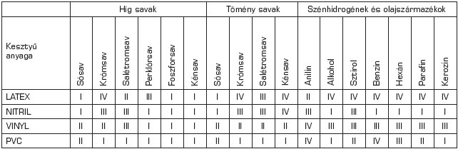 A védőkesztyűk ellenálló képességét befolyásolja a környezeti hőmérséklet, a kontaktus időtartama, a vegyi anyagok koncentrációja stb.