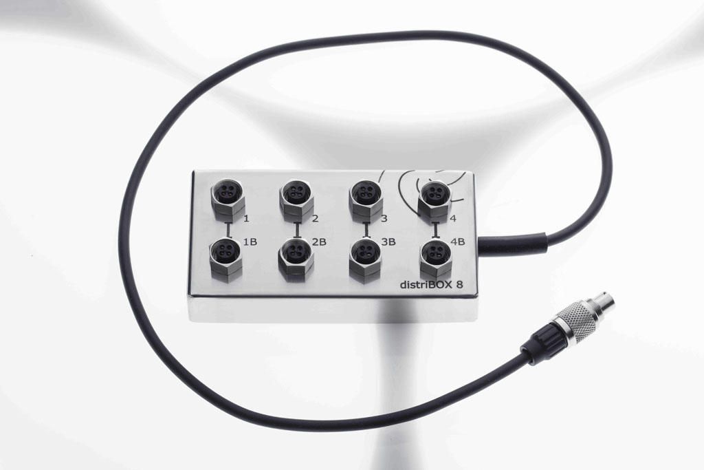 distriBOX 4 / 8: Distributors that can be connected to MIXcontrol 20 and MIXcontrol 40 controllers, for 4 or 8 magnetic stirrers. The magnetic stirrers connected via the distributor cannot be controlled separately, all devices operate on a set parameter.