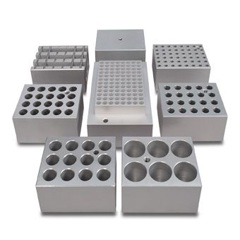Aluminum blocks with holes of different diameters.