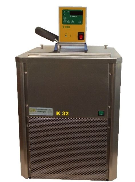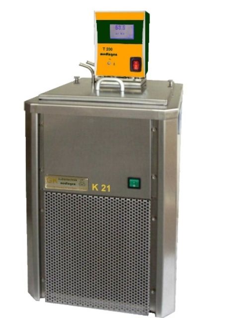 Thermostats combined with stainless steel tank and compressor cooling system. At temperatures above the boiling point or below the freezing point of water, a special liquid must be used as a heat transfer fluid.