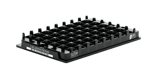 They are suitable for temporary storage of screw caps while working with the tubes. They can be used to reduce cross-contamination and mix-ups of caps when reclosing. With their standard SBS format, they can also be integrated into automated systems.