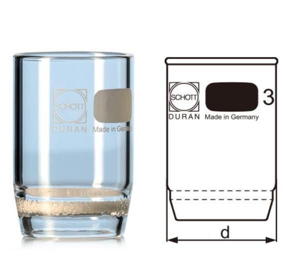 Size: (d) 28 mm, order unit: 10 pieces. Made of Duran glass.