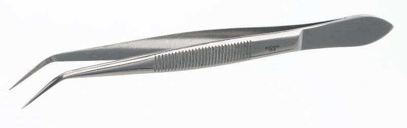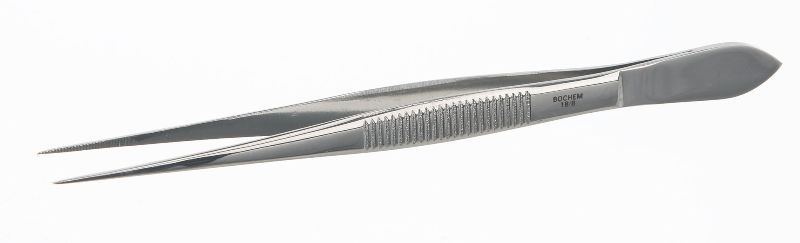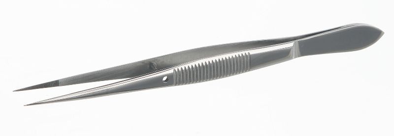 Forceps with guide-pin, stainless steel, sharp, L=105 mm
