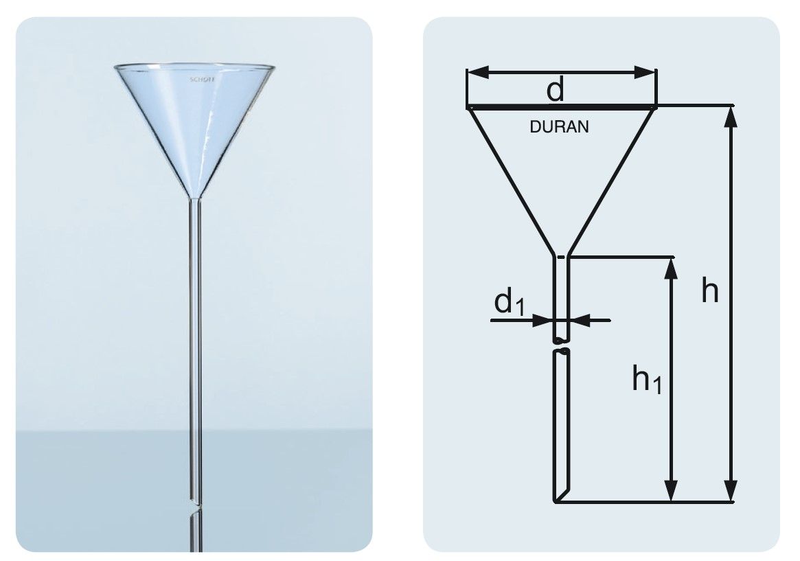 Powder funnels made of Boro 3.3 glass, manufactured by Simax