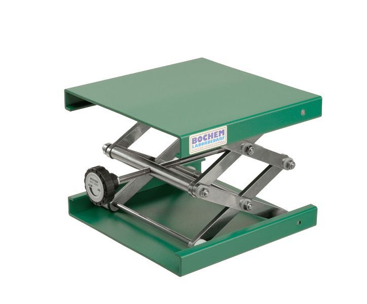 Lab-Jack out of aluminium, EPOXI powder coated, green, DIN 12897, Height 60-275mm, 240x240mm, with adjusting wheel, operating load (Kg max dynamic) according to DIN 12 897