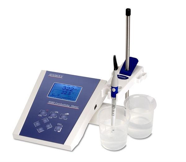 Features: GLP compliance, full interface option, on-line "HELP" menus, low conductivity measurement option (5-18 Mohm), direct control of optional mixer, calibration reminder, security code, etc. The instrument can store 500 measurement results, the display can be in Siemens, Mohm or TDS (total salt: ppm NaCl). Full interface capacity: analog, RS 232 and infrared (IrDA). Accessories: built-in ATC sensor, K=1 glass conductivity measuring cell (73.027013), electrode holder (73.903300), mains power supply.