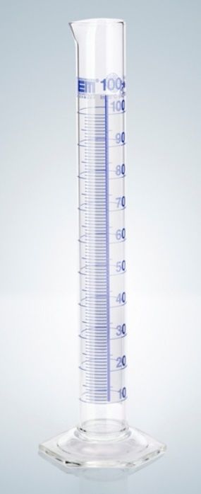 Hirschmann measuring cylinders with Schellbach graduation. Made of borosilicate 3.3 glass.