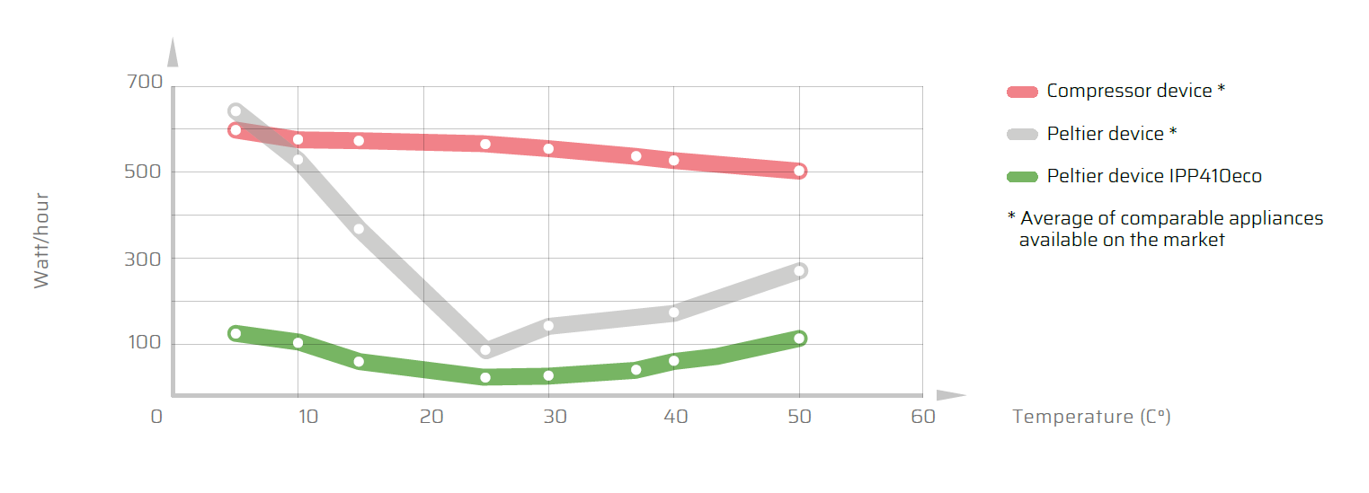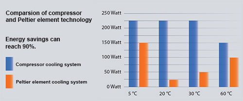 Cooling / heating system: energy-saving and environmentally friendly PELTIER element.