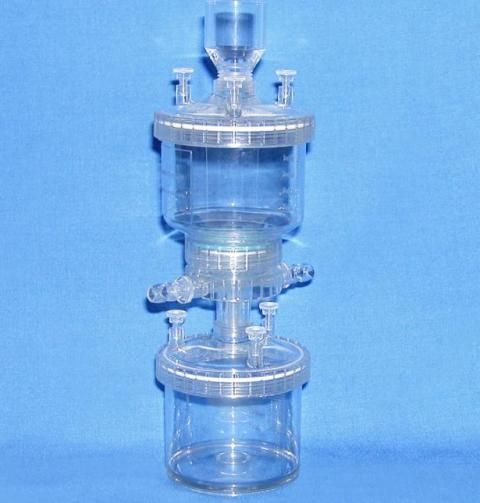 Closed, complete filter system for vacuum filtration. By removing the lower collection container, it is compatible with the previously mentioned filter stand.