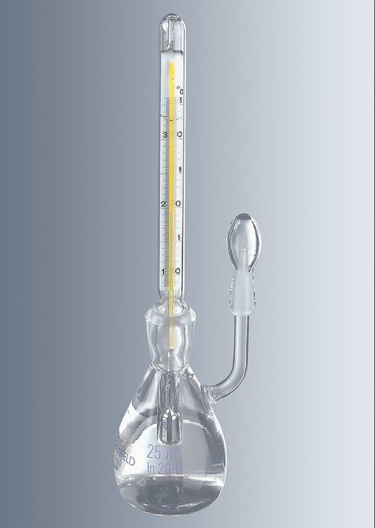 Calibrated pycnometers class "A". Versions with and without a thermometer are also available.