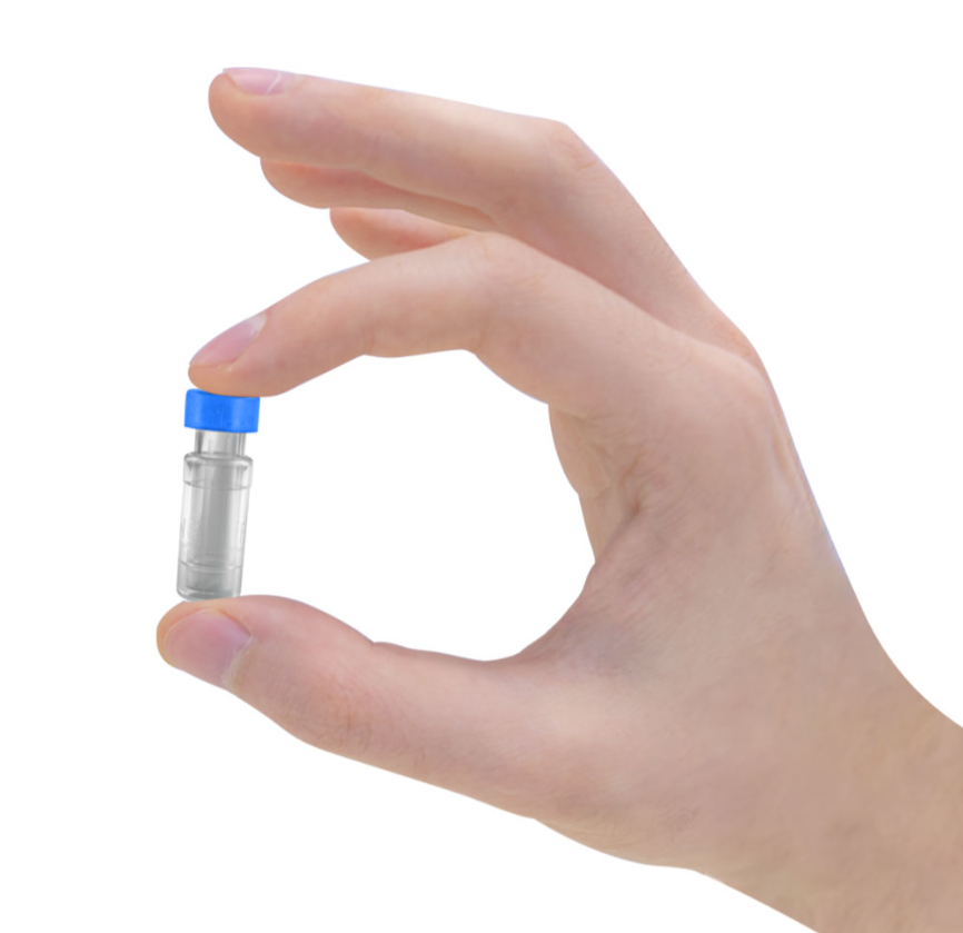 "Consists of an outer vial, inner insert, membrane chamber and a pre-cut septum cap.