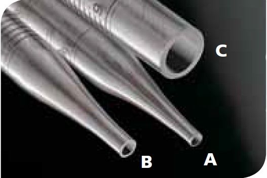 External tip diameter, between 5.45 – 5.7 mm, internal diameter tip end: between 1.8 – 2.2 mm.
