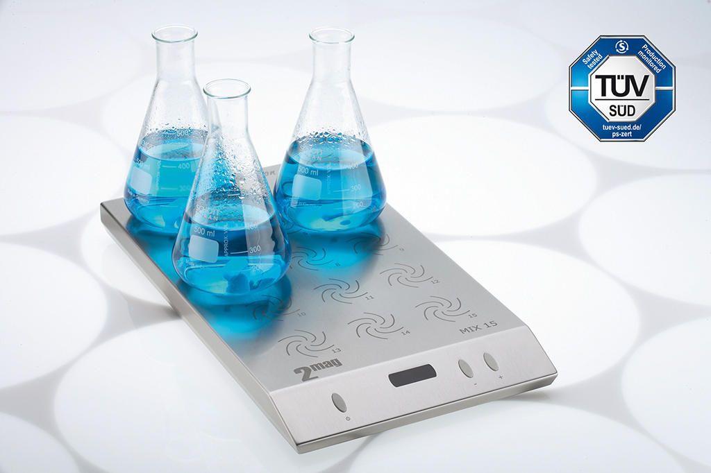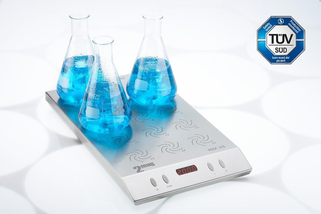 15 keverő pozíció (pl. 15 X 250 ml Erlenmeyer)