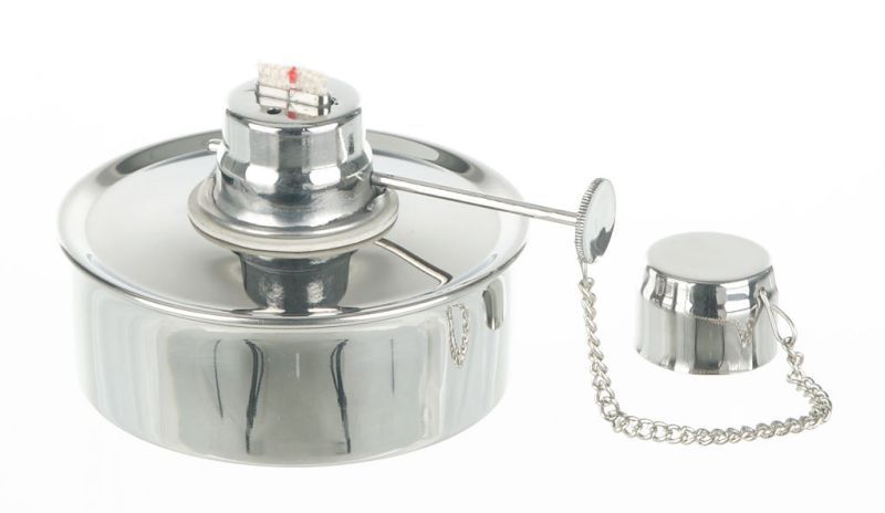 Spiritusz égő vagy alkoholos égő lángoltó kupakkal. Anyaga: szóda üveg. Külön rendelhető tartozékokkal: kanóc, kanóctartó.
