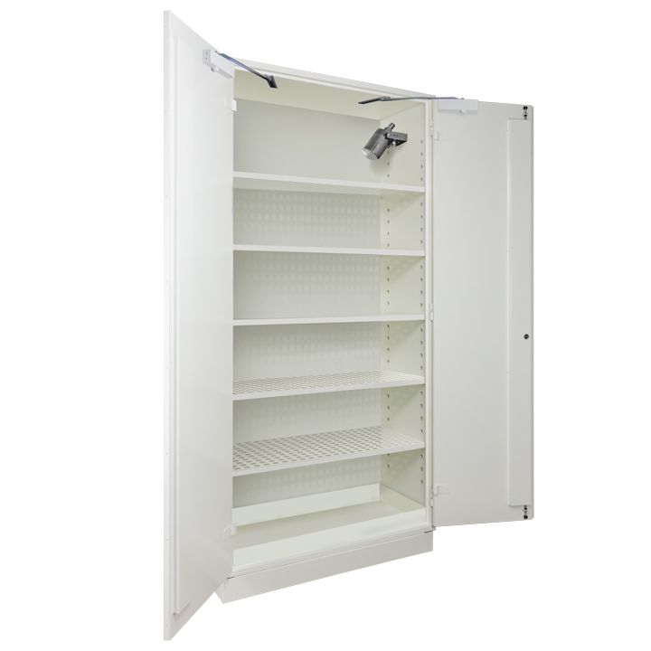 2 zárható ajtóval, 5 polccal és 1 speciális lítium tűzoltóval.