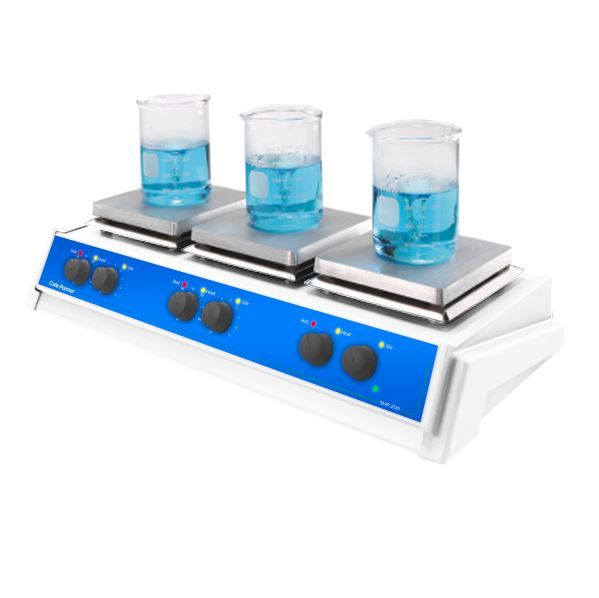 A készülék három, egymástól független fűthető mágneses keverőként funkcionál: a keverési sebesség és a fűtési hőmérséklet külön-külön, fokozatmentesen szabályozható. A keverési felület anyaga alumínium-szilikon ötvözet. A funkciók működését (fűtés/ keverés) lámpák jelzik. A fűtőlap forróságára villogó lámpa figyelmeztet.