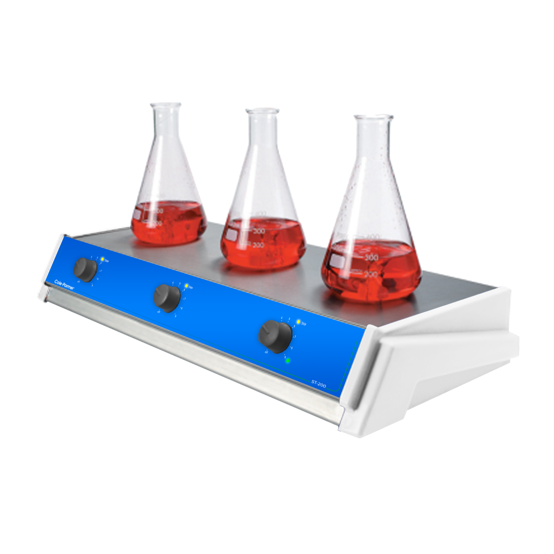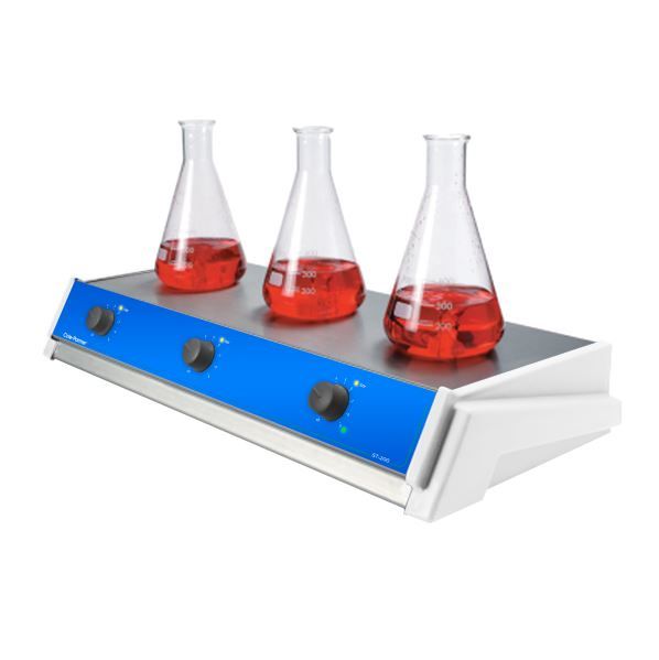 A készülék három, egymástól független mágneses keverőként funkcionál: a keverési sebesség külön-külön, fokozatmentesen szabályozható.