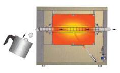 A tisztítandó tégelyt a kemence elején dugjuk be az égetőcsőbe. A kemencében egyszerre több tégely van, ezek egymást tolják, így ha a cső megtelik, a végén a már csaknem teljesen lehűlt tégely egy tartóedénybe hullik ki.