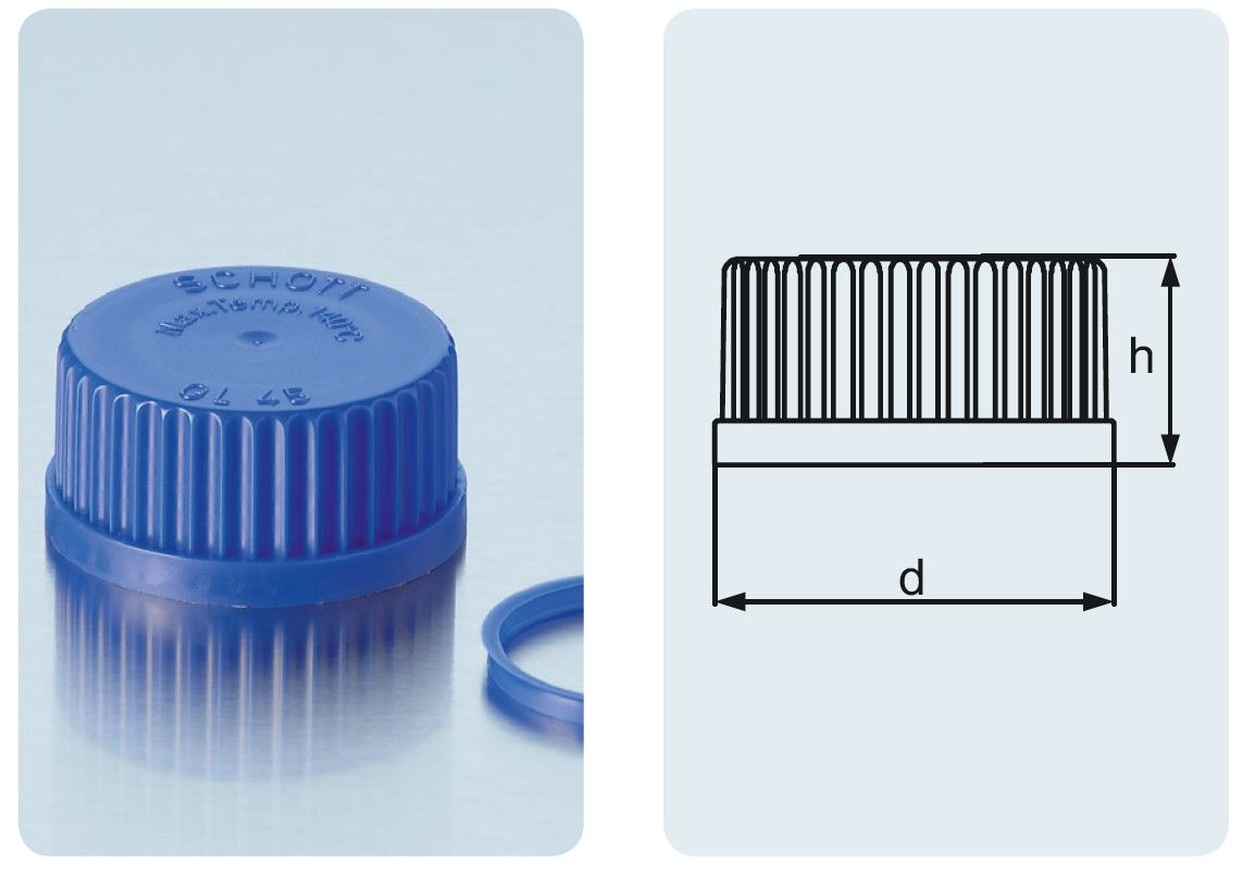 Ezek a kupakok az ún. "Schott" - menetes - laboratóriumi üvegekre valók. Az üveg térfogatától függően a kupak mérete GL 25, GL 32, GL 45, vagy GL 80-as lehet,
