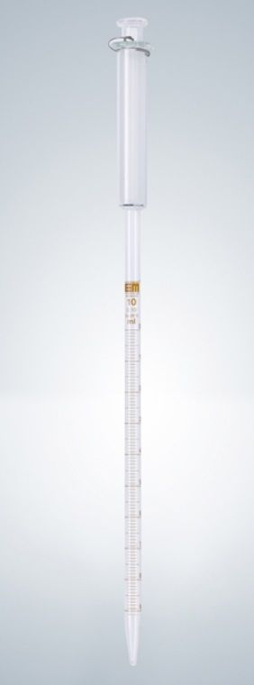 Beépített dugattyúval az egyszerű és kockázatmentes pipettázásért. Tartós, barna festésű beosztással.
