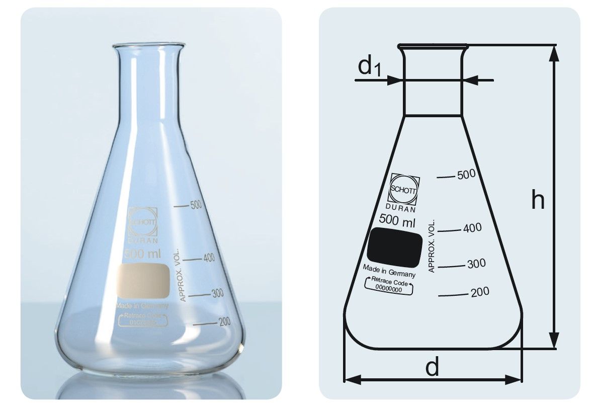 Méret: (d×h) 22 × 105 mm, Duran üvegből, osztással.