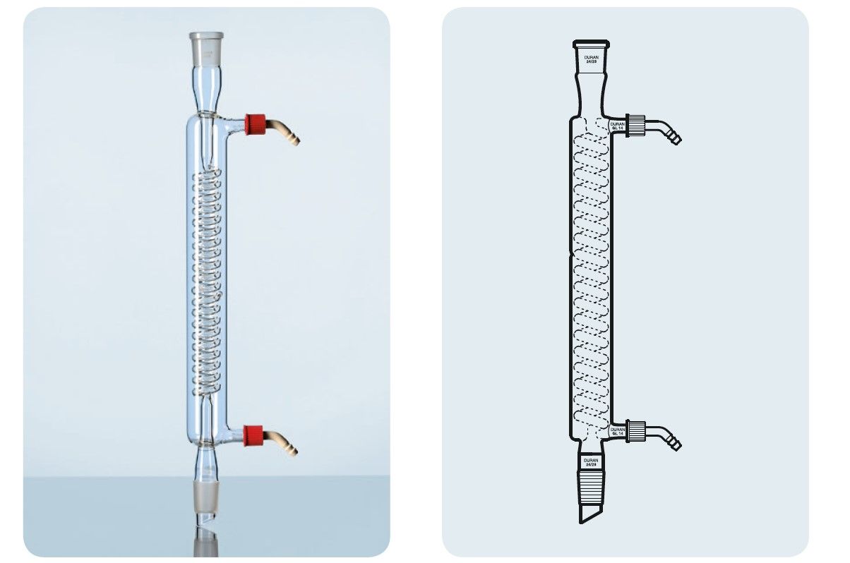 160 mm-től 400 mm-es hosszig. Anyaga: boroszilikát 3.3 üveg, jellemző: 2 NS csiszolat, és 2 db oliva