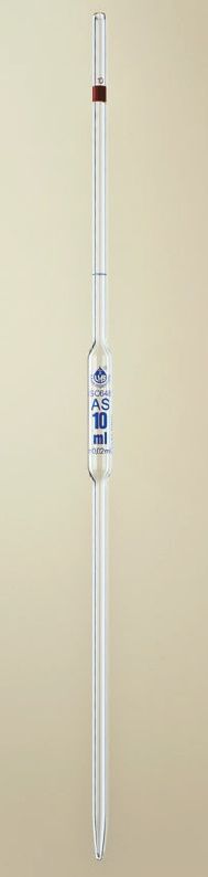További információkOsztott pipetta vagy mérőpipetta, kétjelű, A jelű. A két végjeles mérőpipetta többféle térfogatban kapható kék vagy barna színű beosztással.