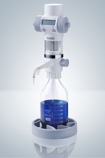 A Hirschmann Solarus digitális bürettája kézi titráláshoz való, a reagents közvetlenül az alatta lévő palackból veszi. A büretta reagens recirkulációs rendszerrel rendelkezik. Az eszköz áramellátást napelem biztosítja. A digitális büretta három térfogatban (10 ml, 20 ml és 50 ml) kapható.