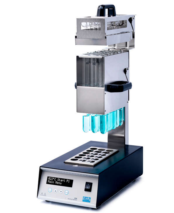 A VELP gyártmányú hagyományos Kjeldahl roncsolók DK-sorozatú készülékei tökéletes hőmérséklet homogenitást garantálnak, a maximális hőmérséklet 450°C. A hőmérsékletet mikroprocesszoros vezérlés szabályozza. Lehetőség van a hőmérséklet és az idő kézi beállítására. A kétsoros LCD kijelzőn keresztül folyamatosan követhető a roncsolás folyamata. 20 darab, 4 lépcsős program tárolható, 1-999 perc közötti időzítés állítható be.