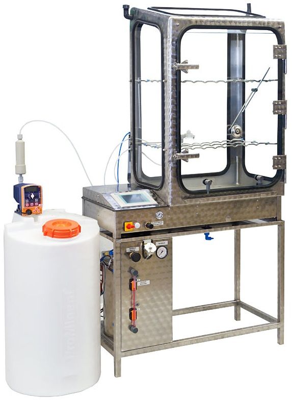 Kombinált (só és kondenzvíz) sópermet kamrák kiváló minőségű rozsdamentes acélból, négy oldalán és a tetején a folyamat megtekintésére szolgáló üveggel. Windows 10 alapú érintőképernyős vezérlőpanellel, amely a hőmérséklet és a páratartalom grafikus megjelenítéseire is szolgál. A készülékek állványnal és sóoldat tartállyal kerülnek szállításra.