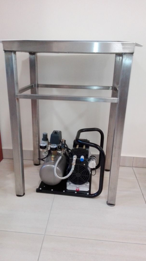 Amennyiben az autoklávban - vizet használó - gyorshűtő rendszer működik, az ehhez szükséges sűrített levegő előállítását csendes-üzemű olajmentes kompresszorral tudjuk megoldani. A kompresszor teljesen automatikusan működik. Ezt támasztólevegős gyorshűtésnek is nevezzük.
