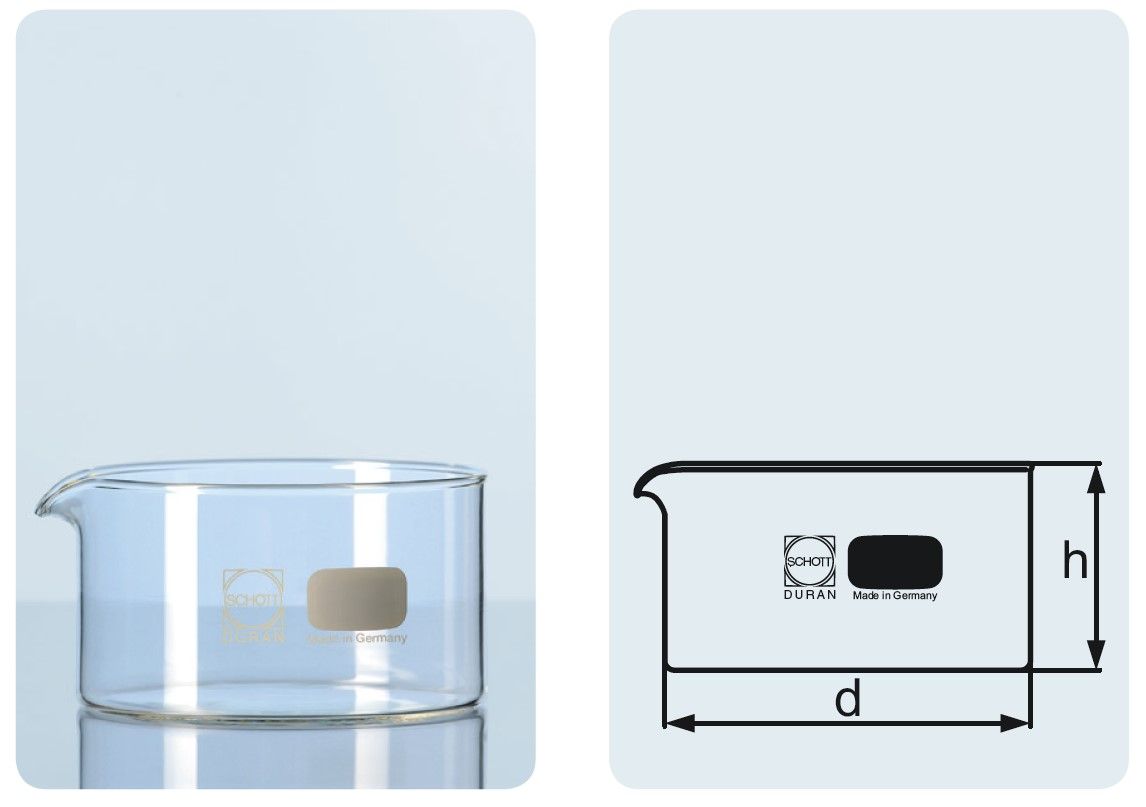 Kiöntővel rendelkező kristályosító csésze.