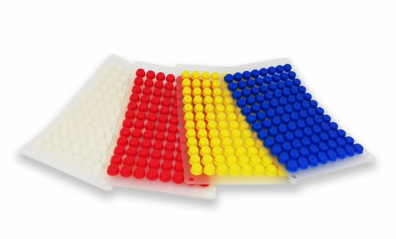 Anyaga: TPE, mely biztosítja a hermetikus zárást. Fagyasztható: -86 °C-ig. Rendelési egység: 1 csomag (10 ív X 96 db), összesen 960 db kupak.
