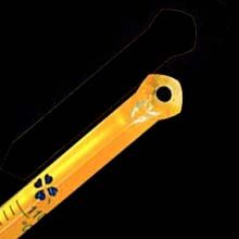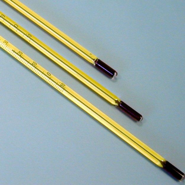 sárga festésű háttérrel, környezetbarát, higanymentes, kék színű természetes folyadék töltéssel (Biotemp). A folyadék biztonságos, törés esetén a maradéka H2O + CO2-ra bomlik le. d: 6-7 mm, hossz: 305 mm, osztás: 1 °C