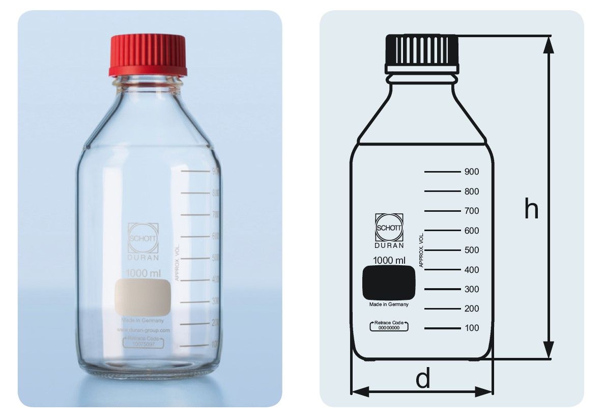 Kupak és kiöntőgyűrű nélkül, GL 32, autoklávozható, DURAN üvegből.