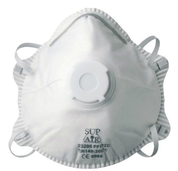 Kónuszos forma, légzést segítő szeleppel. Mérgek, szilárd és folyékony részecskéi ellen (pl. króm, mangán, nikkel, kadmium, platina, strichnin, enzimek, vírusok, gyógyszergyártás, elem- és akkumulátor feldolgozás). D jelölés: megfelelt a dolomit teszt eredményének, kis légzési ellenállás megtartása mellett garantálva az eltömődés nélküli, hosszabb idejű használhatóságot. Polietilénbe ágyazott, alaktartó fémszál orrcsipesz, kényelmes felfekvést segítő szivacscsík, nem allergén. Két rugalmas gumipánttal. Névleges védelmi tényező: 50 MK. Súly: 32 g. EU szabvány: EN149:2001 +A1:2009. Rendelési egység: 5 db/ doboz.