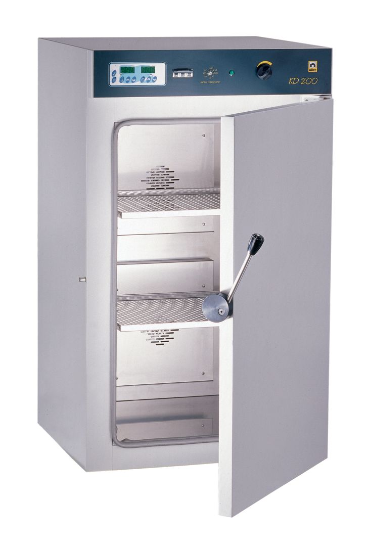KD 200 és 400 típus: nagyméretű, 193 és 375 literes szárítószekrények mikroproceszszoros (PID) vezérléssel, felhasználóbarát kezelőfelülettel és digitális kijelzővel.