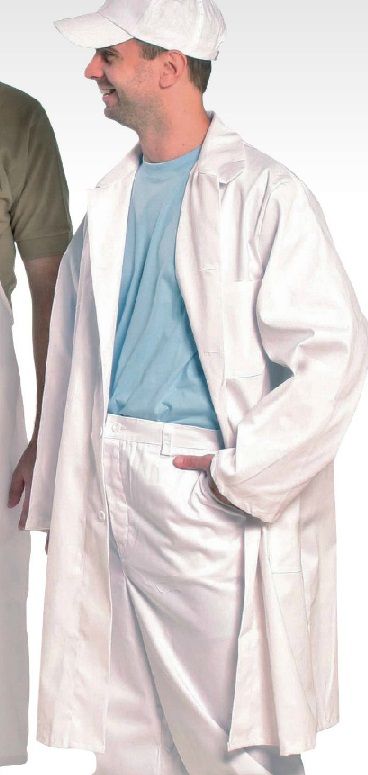 Anyaga: 100% fehér pamut, kiválóan szellőző, 90°C-on is mosható. 120 cm hosszú, galléros, egyenes szabású, gombos "orvosi" köpeny három zsebbel. EU szabvány: EN340.