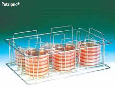 Systec gyártmányú petricsésze-töltő automata. A különleges megoldásainak köszönhető a valóban nagy töltési teljesítménye. Egy percen belül lecseréhető a megtöltött karusszel az üres csészéket tartalmazóra.