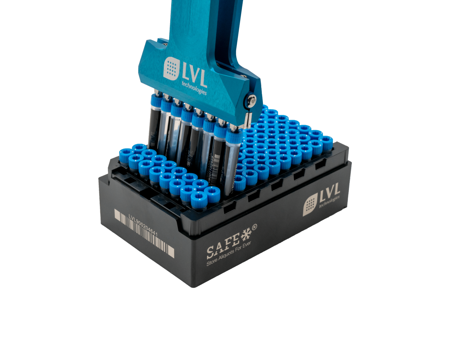 Könnyű és biztonságos megoldást kínál egy rack teljes sorának a kiemeléséhez. Az eszköz lévén végő hegyeket a kupakokba kell helyezni, majd a fogantyúra kifejtett egyhe nyomás szétnyitja a fejeket, ezzel tartva a csöveket. A csövek letevéséhez elég megszüntetni a kifejtett nyomást. Használata csökkenti a keresztszennyeződések kockázatát.