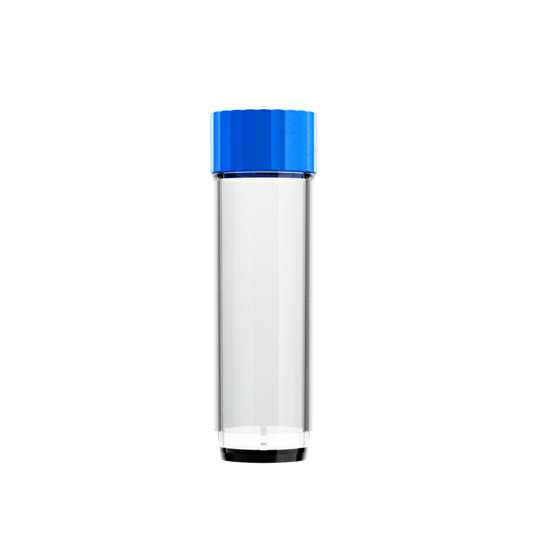Kék színű, csavaros kupakkal.