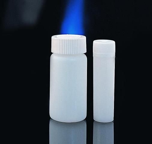 20 ml-es szcintillációs edény, szivárgásmentesen záró csavaros kupakkal. Anyaga: polietilén (HDPE).