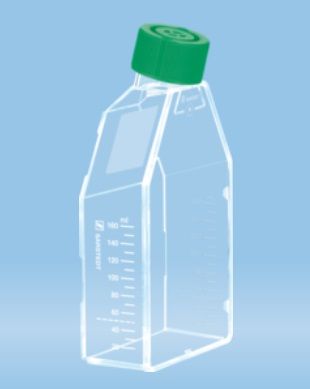 Steril, ferde nyakú tenyésztőflaska, 2 pozíciós gyorskioldó csavaros kupakkal. Anyaga: flaska: polisztirol (PS), kupak: polietilén (PE), membrán: poliéterszulfon (PES). Pirogén-, endotoxin-mentes, nem cytotoxikus, gamma sugárzással sterilezett.