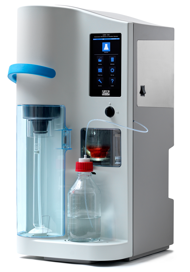 Alkalmas ammónia-nitrogén, fehérje, nitrogén tartalom (Kjeldahl vagy direkt alkáli desztillálás), nitrit-nitrogén (redukció után), fenolok, illékony savak, cianidok, alkohol meghatározásra valamint Devarda nitrogén meghatározásra. A technopolimerből készült, erős és vegyszerekkel szemben ellenálló szerkezettel. Tartós. Az UDK 159 automatikusan működik, a 7"-os nagyfelbontású színes érintőképernyős grafikus kijelzővel ellátott kezelőpanel segítségével beállítható a nátrium-hidroxid-adagolás és a desztillációs idő a megbízható és pontos eredmények elérése érdekében. A nagy pontosságú szivattyúk biztosítják a reagensek állandó pontos adagolását. A VELP szabadalmaztatott gőzgenerátorával, amely nagy teljesítményt, biztonságot nyújt (nincs nyomás belül), és karbantartást nem igényel. A titanium kondenzátor csökkentett vízfogyasztást kínál, biztosítva, hogy a párlat hőmérséklete mindig a küszöbérték alatt maradjon.
