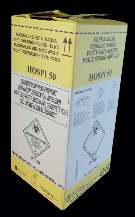 Ezek a hulladékgyűjtő dobozok kartonpapírból készülnek. Alkalmasak a Class II besorolású, szilárd, és félszilárd hulladék gyűjtésére.