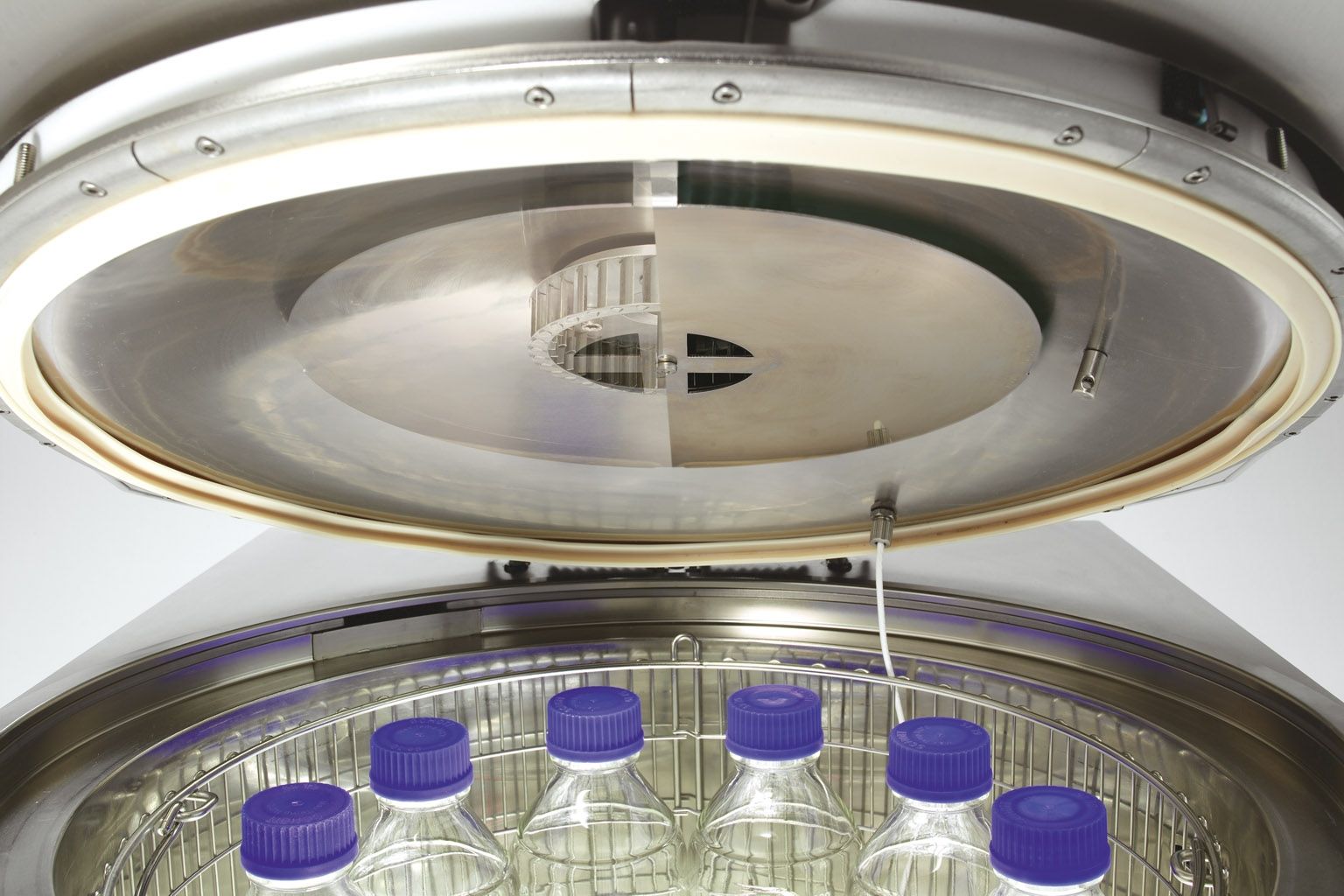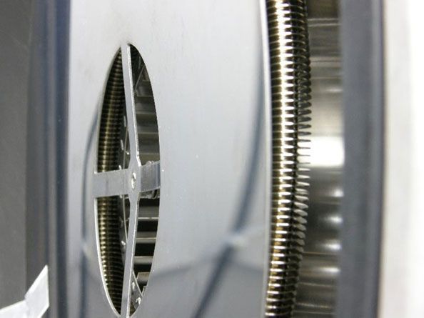 A 65 literesnél nagyobb kamratérfogatú Systec autoklávokban a légkeverő ventilátor a homorú ajtóba van beépítve. Ezért a ventilátor semmi hasznos helyet nem vesz el a kamrából.