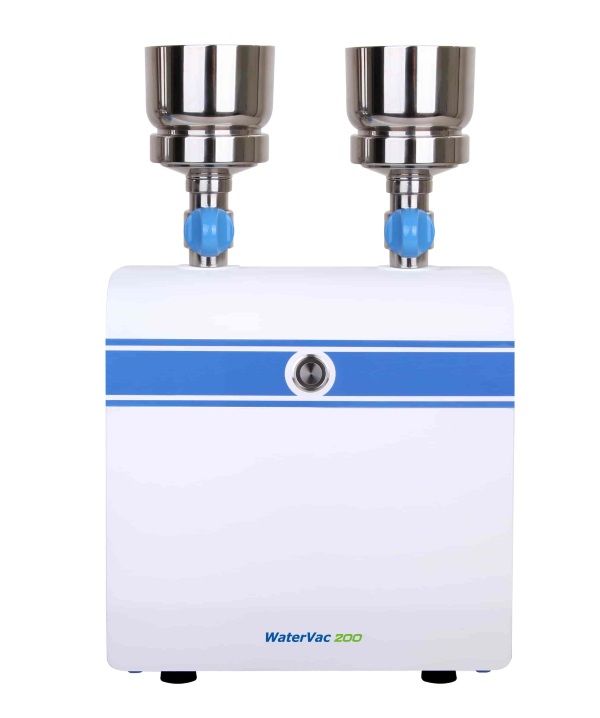 A szűrőállványba integrált vákuum folyadékszivattyú karbantartásmentes motorral van szerelve. Kis helyet foglal el a laborasztalon, és rendkívül egyszerű a tisztítása. Külső borítása rozsdamentes acélból készül, a folyadékkal érintkező részei rozsdamentes acél, FKM, szilikon, PP, PPS közepesen vegyszerállók, így isopropanollal vagy hidrogén-peroxiddal fertőtleníthetők.